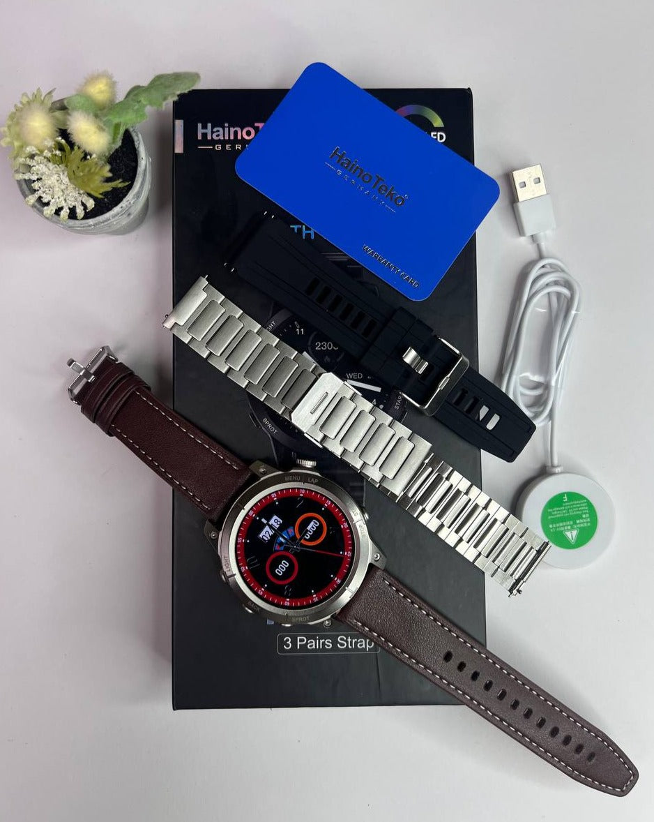 The resilient athletic design features a 1.3” scratch-resistant sapphire solar charged display, responsive touchscreen, traditional buttons and 47 mm fiber-reinforced polymer case with a titanium bezel and rear cover. The watch is tested to U.S. military standards for thermal, shock and water resistance.